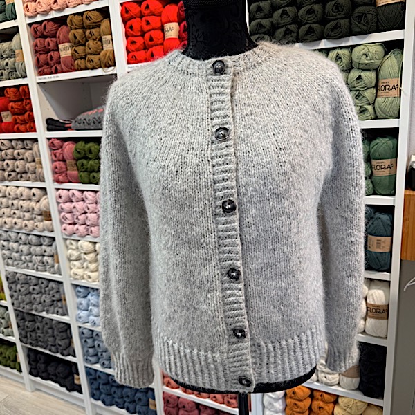 Materialer: Str. L, 7 stk. Flora, 5 Kid-Silk, 5 knapper